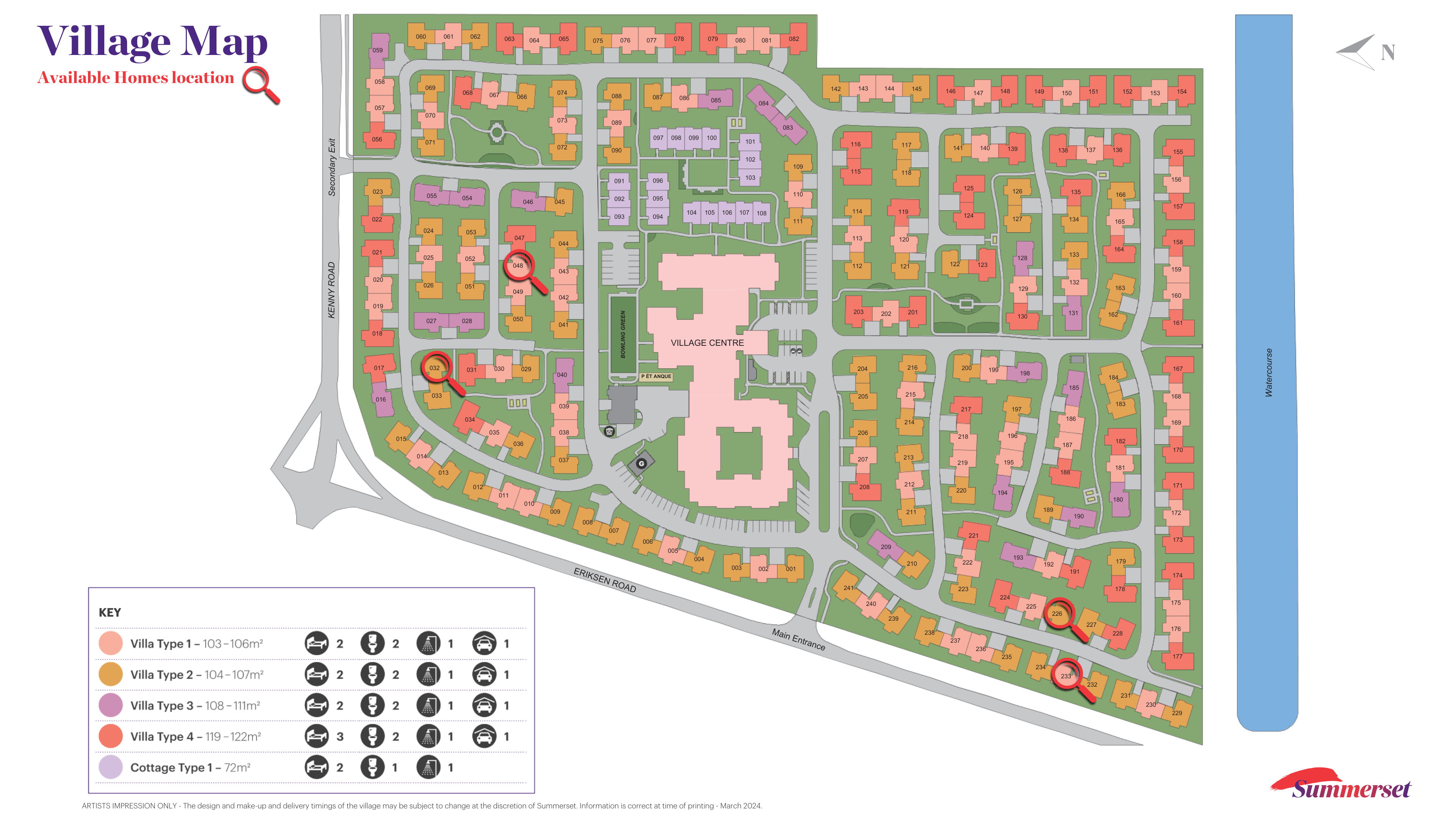 Just steps from a communal vegetable garden, this sought-after north-facing corner villa with your choice of curtains or blinds is a short walk to the village centre.