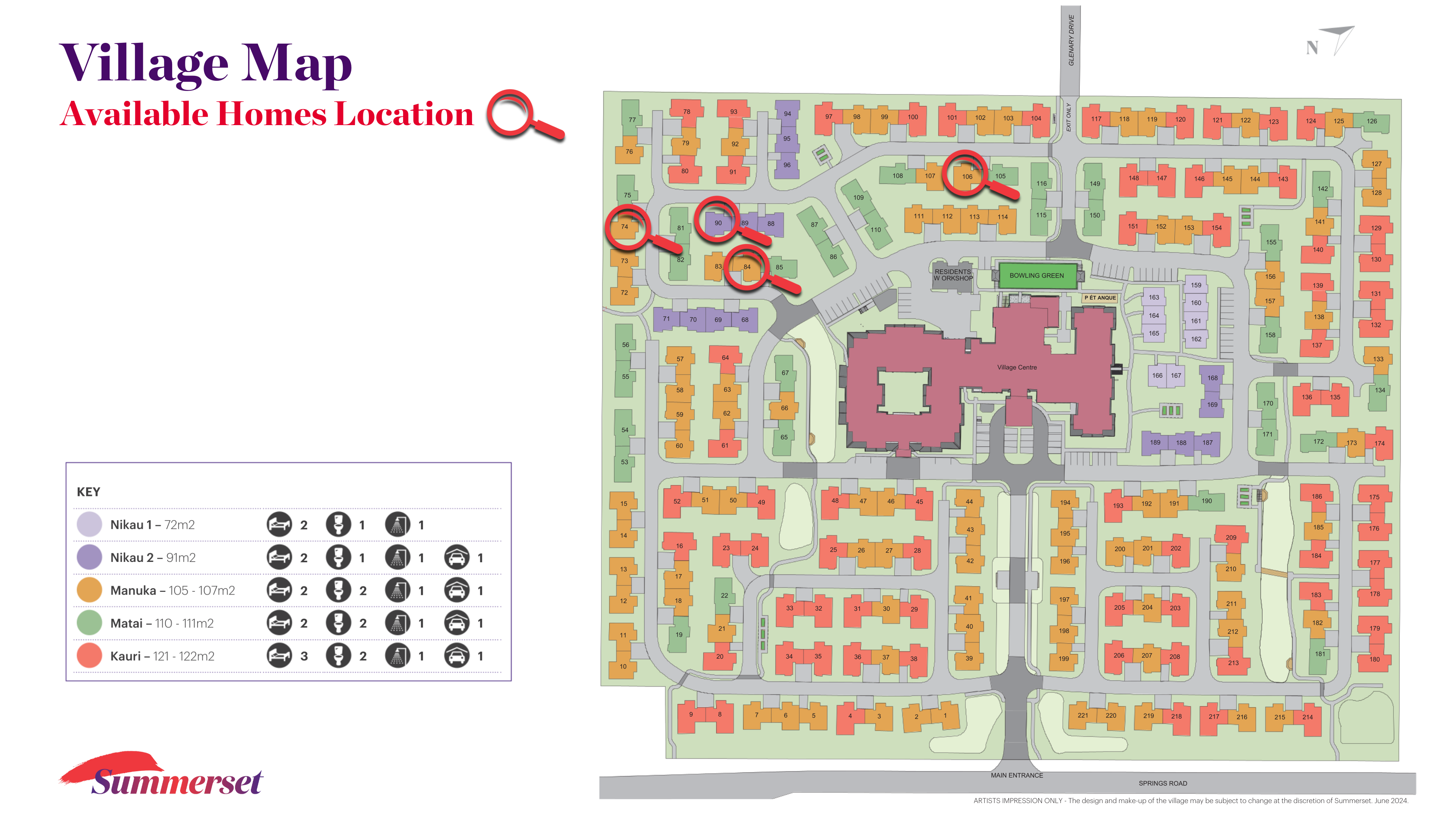 As a Friend of Summerset, we’re excited to share with you some of the currently available homes at Summerset Prebbleton. These homes may not be around for long, so get in touch today if you'd like to find out more or book a time to view. Click here to view the location of each home on the village map.